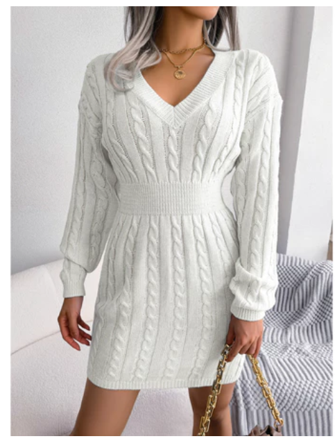 Autumn Winter Dress White ( Free Size )