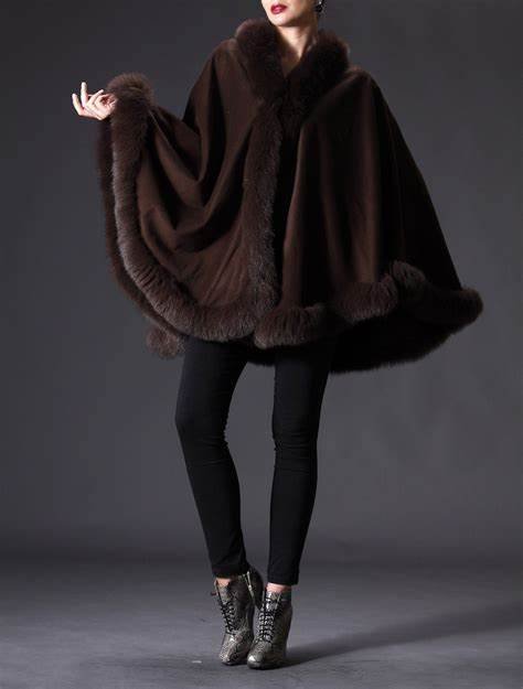 Fuzzy Trim Solid Cape Coat